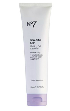 Beautiful Skin Melting Gel Cleanser จาก No7 เคลนเซอร์ทำความสะอาดผิวสูตรพิเศษ แตกต่างจากผลิตภัณฑ์อื่นๆทั่วไป ที่สามารถเปลี่ยนสภาพจากเนื้อเจลเป็นน้ำมัน และกลายเป็นครีมน้ำนมเมื่อล้างออกด้วยน้ำ ช่วยปกป้องผิวจากการสูญเสียความชุ่มชื่นตามธรรมชาติขณะล้างหน้า ช่วยให้ผิวสะอาด สดชื่น และเนียนนุ่มขึ้น ราคา 420 บาท