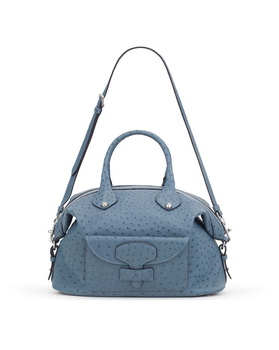 กระเป๋าหนังนกกระจอกเทศสีฟ้า สามารถปรับและถอดสายออกได้ จาก Loewe สอบถามราคาที่ร้าน