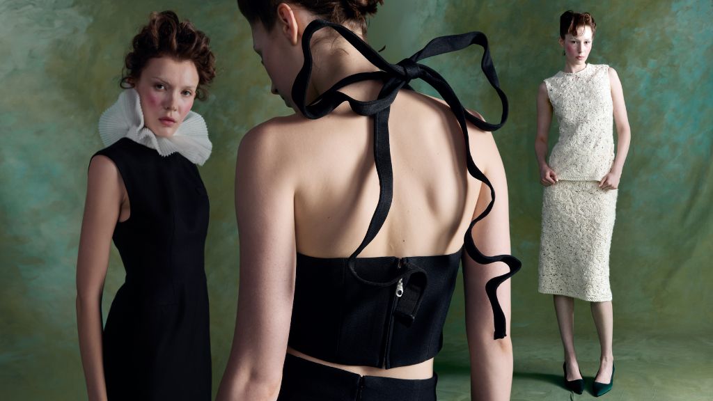 เริ่มที่ เดรสลูกไม้ทรงตรง และชุดเสื้อแขนกุดเรียบๆ กับกระโปรงทรงสอบเข้าชุด ดูทันสมัยและเปรี้ยวขึ้นด้วยซับในผ้าซาตินสีสด เสื้อเกาะอกและกางเกงเข้าชุดผ้านีโอพรีนตกแต่งด้วยเข็มกลัดขนนก เช่นเดียวกับเสื้อเบลเซอร์ทรงโอเวอร์ไซส์สองกระดุม พร้อมกางเกงและเดรสแขนกุดที่ตัดเย็บด้วยผ้าสไตล์เทเลอร์ กับเข็มกลัดขนนกกระจอกเทศสีฟ้าน้ำทะเล และเสื้อคอร์เซตไหล่เดี่ยวผ้าดัชเชสซาตินจับเดรป กับกางเกงยีนส์โคร่งสีขาวเคลือบสีเหลือบ