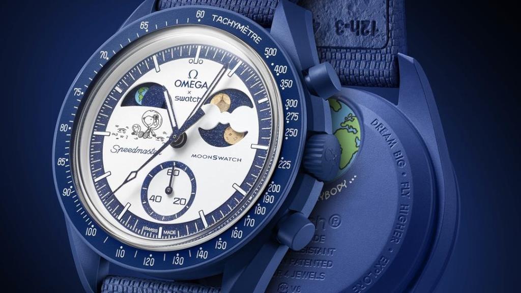 MISSION TO EARTHPHASE – MOONSHINE GOLD เป็นเรือนเวลาน้องใหม่ในคอลเลกชัน Bioceramic MoonSwatch วางจำหน่าย 9 สิงหาคมในคืนจันทร์เพ็ญ ที่ร้าน Swatch ทั่วโลก เฉพาะสาขาที่ร่วมรายการ ประกอบด้วย ฟังก์ชันบอกดิถีของโลก นวัตกรรมล่าสุดของ Swatch ฟังก์ชันบอกดิถีของดวงจันทร์ที่เคลือบ Moonshine™ Gold จาก OMEGA และรูปภาพจากการ์ตูน Snoopy