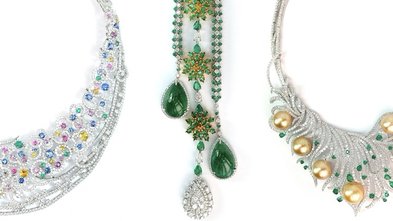 3. ANANDA สร้อยคอมรกตประดับเพชร มรกตถือเป็นอัญมณีแห่งโชคลาภและความเจริญรุ่งเรือง มีพลังอำนาจทำให้คู่รักมีความซื่อสัตย์ต่อกัน แสดงถึงความจริงใจ ประกอบด้วย เพชร น้ำหนัก 6 กะรัต พลอยมรกตน้ำหนัก 394 กะรัต ทองคำน้ำหนัก 33 กรัม
