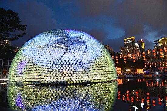 >>การท่องเที่ยวฮ่องกงจัดเทศกาลกลางฤดูใบไม้ร่วงรับเทรนด์รักษ์โลกโดยการเนรมิตขวดพลาสติกใช้แล้วกว่า 7,000 ขวดให้มีชีวิตใหม่ ประดิษฐ์เป็นประติมากรรมโคมไฟขนาดยักษ์สูงเทียบเท่ากับอาคาร 3 ชั้น ออกแบบโดยเหล่าสถาปนิกหนุ่มรุ่นใหม่ 4 คน โคมไฟยักษ์นี้ถูกจัดแสดงที่สนามฟุตบอลหมายเลข 6 ที่วิกตอเรีย ปาร์ก เป็นไฮไลต์สำคัญของงาน “one2free Lantern Wonderland” เพื่อฉลองเทศกาลในปีนี้ นอกเหนือจากแนวคิดอนุรักษ์สิ่งแวดล้อมแล้ว ประติมากรรมโคมไฟยักษ์ยังมาพร้อมกับความมีชีวิตชีวาและความคิดสร้างสรรค์ ที่พร้อมจะสร้างแรงบันดาลใจให้กับชาวฮ่องกงและผู้มาเยือนได้ตลอดช่วงเทศกาล