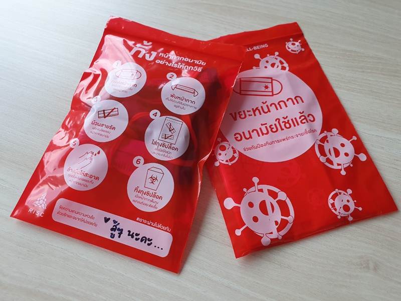 RISC จึงนำเสนอ “ถุงแดงซิปล็อกจำกัดเชื้อ” หรือ Red Zip-Lock นวัตกรรมสำหรับทิ้งหน้ากากอนามัยที่ใช้แล้วใส่ในถุงซิปล็อกสีแดง ทำให้ง่ายต่อการคัดแยก เพื่อแก้ไขปัญหาดังกล่าวให้หมดไป ซึ่งสอดคล้องกับผลสำรวจที่พบว่า กว่า 95% เห็นด้วยหากมีข้อกำหนดให้แยกทิ้งหน้ากากอนามัยใช้แล้วในถุงขยะติดเชื้อสีแดง เพื่อให้เจ้าหน้าที่เก็บขยะรู้และกำจัดอย่างถูกวิธี และกว่า 55.3% เห็นว่า ถุงแดงสำหรับทิ้งหน้ากากอนามัยใช้แล้วสะดวกสุด และเป็นการใช้พลาสติกตรงตามคุณสมบัติกันน้ำ ลดการแพร่กระจายเชื้อ และใช้อย่างคุ้มค่าเนื่องจากสามารถใส่หน้ากากอนามัยได้หลายชิ้นก่อนทิ้ง นอกจากนั้น ยังได้มีการแทรกแนวคิดการเขียนข้อความขอบคุณ ส่งต่อกำลังใจ และความห่วงใยสู่เจ้าหน้าที่เก็บขยะ บน “ถุงแดงซิปล็อกจำกัดเชื้อ” หรือ Red Zip-Lock อีกด้วย