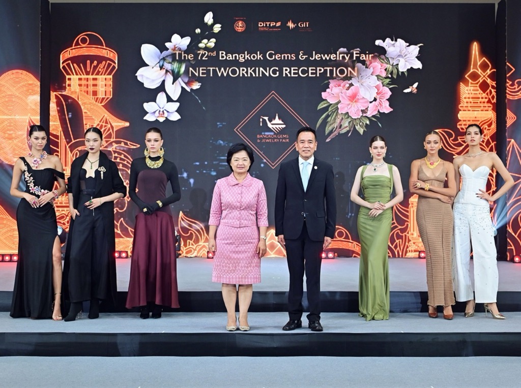 กรมส่งเสริมการค้าระหว่างประเทศ (DITP) ผู้จัดงานหลักร่วมกับ สถาบันวิจัยและพัฒนาอัญมณีและเครื่องประดับแห่งชาติ (องค์การมหาชน) (GIT) จัดกิจกรรม Networking Reception ในงานแสดงสินค้า “Bangkok Gems and Jewelry Fair” ครั้งที่ 72 ณ ห้องเพลนารี ศูนย์การประชุมแห่งชาติสิริกิติ์ โดยมีนักธุรกิจในอุตสาหกรรมอัญมณีและเครื่องประดับไทยและทั่วโลกเข้าร่วมงานคับคั่ง