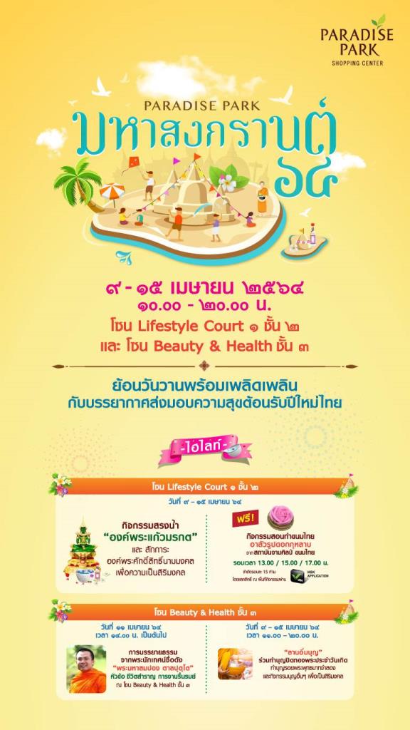 มาร่วมเป็นส่วนหนึ่งกับการส่งเสริม สืบสานศิลปวัฒนธรรม สัมผัสความสุขที่ทุกคนคาดไม่ถึง โดยไม่เสียค่าใช้จ่ายใดๆ ได้ตลอดทั้งงาน ผู้ที่สนใจสามารถติดตามรายละเอียดเพิ่มเติมและกิจกรรมต่างๆ ได้ที่ www.mbk-center.co.th และwww.facebook.com/mbkcenterth